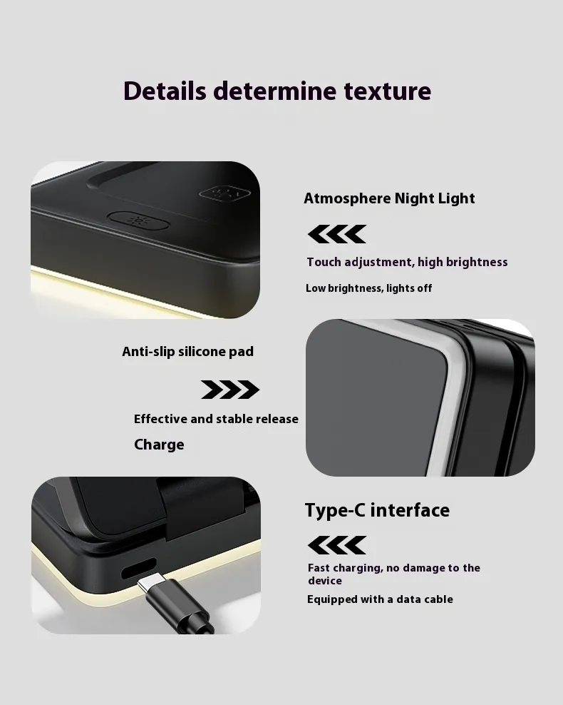 Equipped with magnetic alignment, the charger ensures secure and precise placement for fast wireless charging. Its foldable design makes it portable and ideal for travel, while maintaining a sleek and modern appearance suitable for any desk or bedside table.