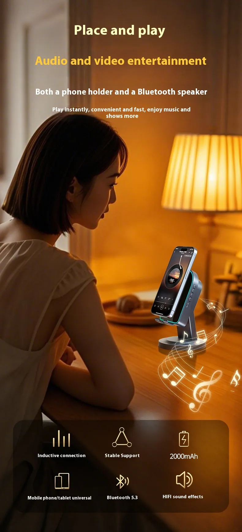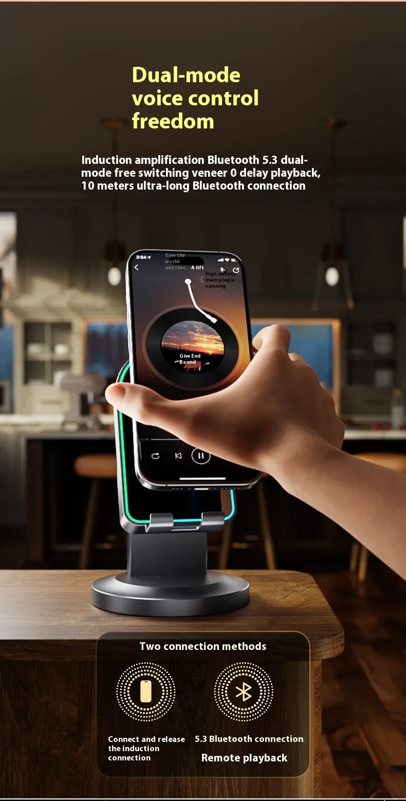 With wireless induction technology, you can amplify your music instantly without messy cables—just place your phone on the bracket, and the sound is boosted automatically. The Bluetooth connectivity allows you to enjoy hands-free calls, stream your favourite playlists, or connect seamlessly to tablets, laptops, and other devices.