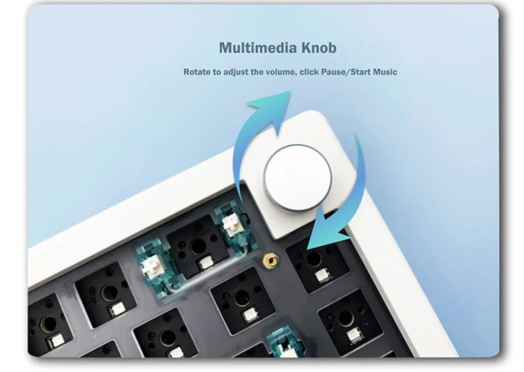 your keyboard. Use the knob for volume control, media playback, or even custom functions like brightness adjustment or macro