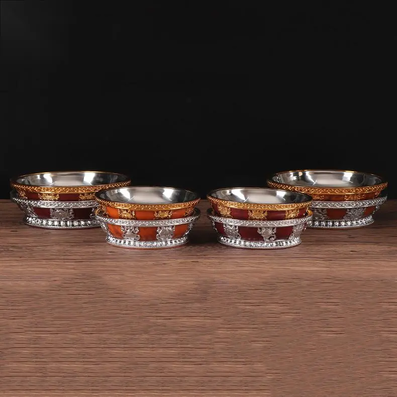 Tibetan Buddhist fruit tribute plate with stainless steel inner liner for Buddha