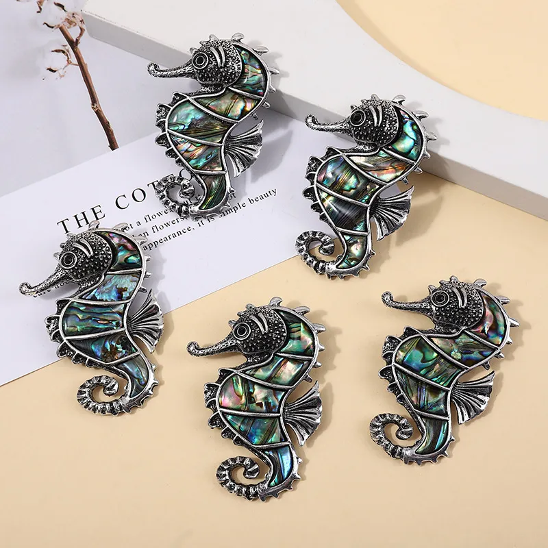 Tidal Abalone Shell Seahorse Brooch Pendant