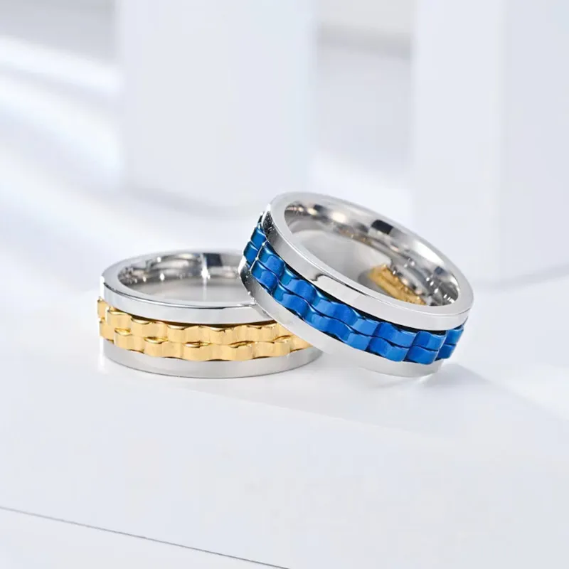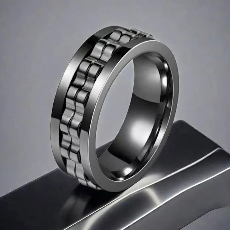 Titanium Spinner Square Texture Ring For Men High Polished Stainless Steel Gear Rotating Anxiety Fidget Rings Charm Jewelry