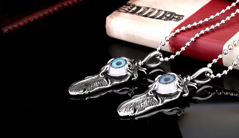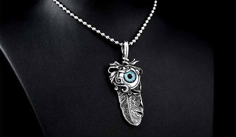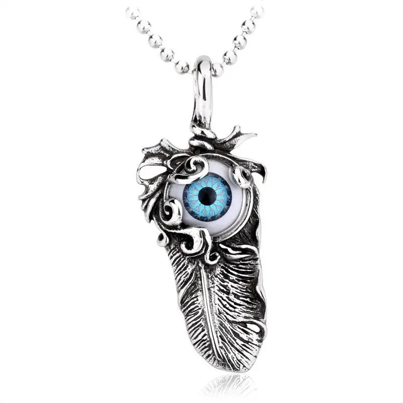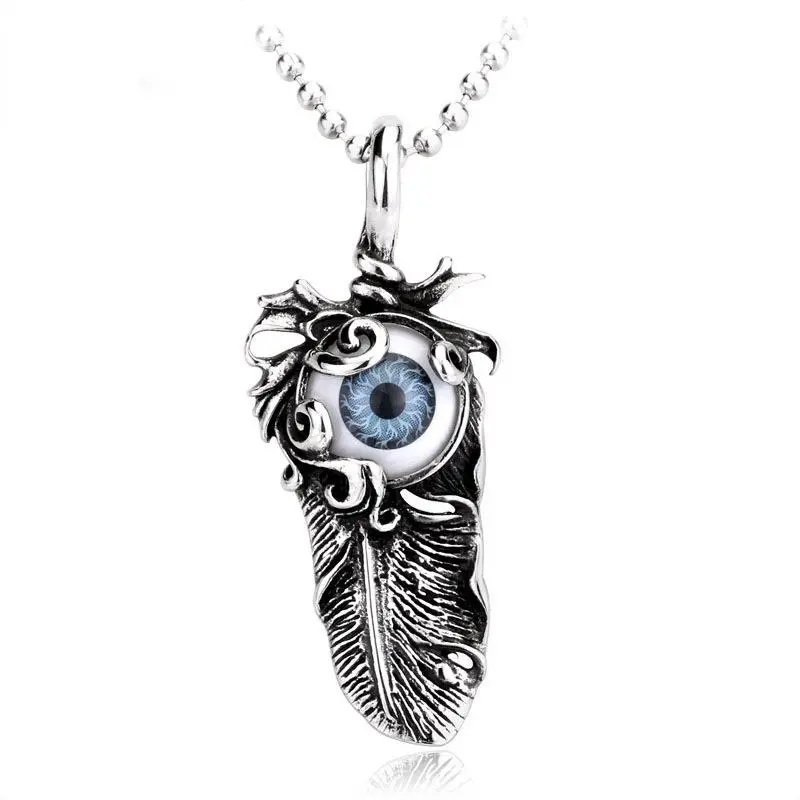 Titanium steel evil eye pendant feather pendant