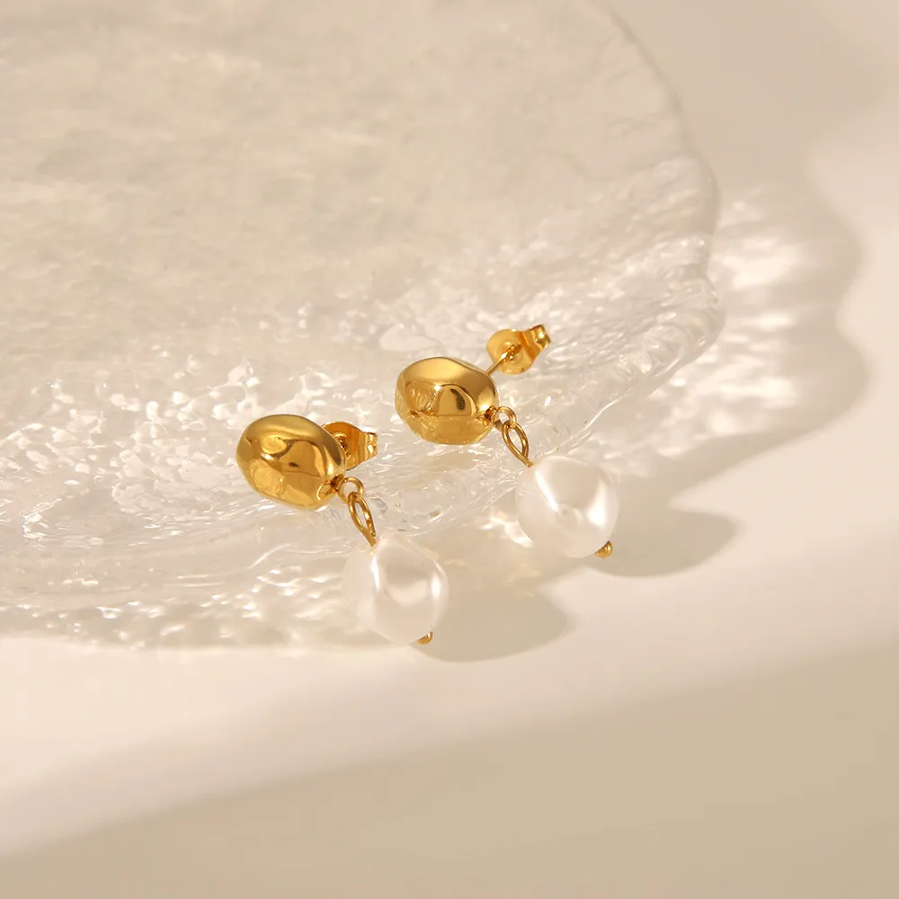 Titanium Steel Irregular High-grade Pearl Earrings For Women