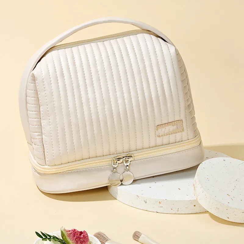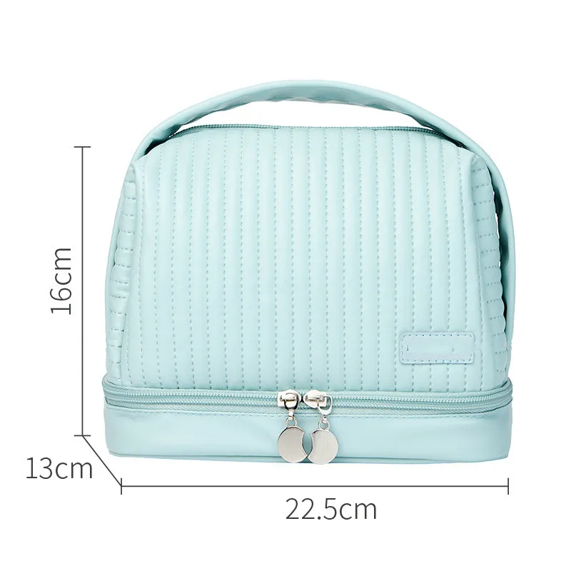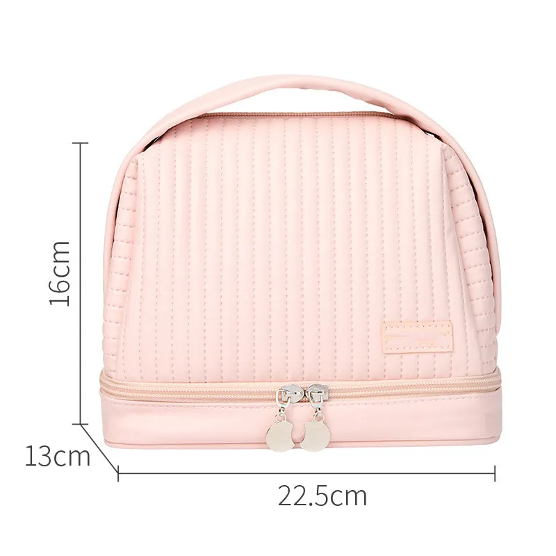 Made from high-quality, durable PU, the bag protects your cosmetics and accessories from spills and moisture.