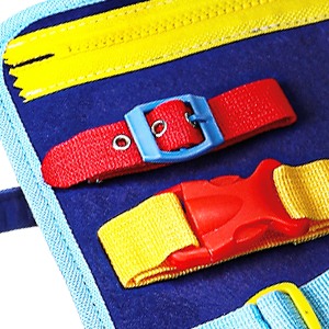 This page is a sensory adventure for your little one! They'll love exploring the textures, playing with the gears, and mastering buckles and zippers. It's a fun way to build essential self-help skills like getting dressed, while keeping them engaged and entertained.