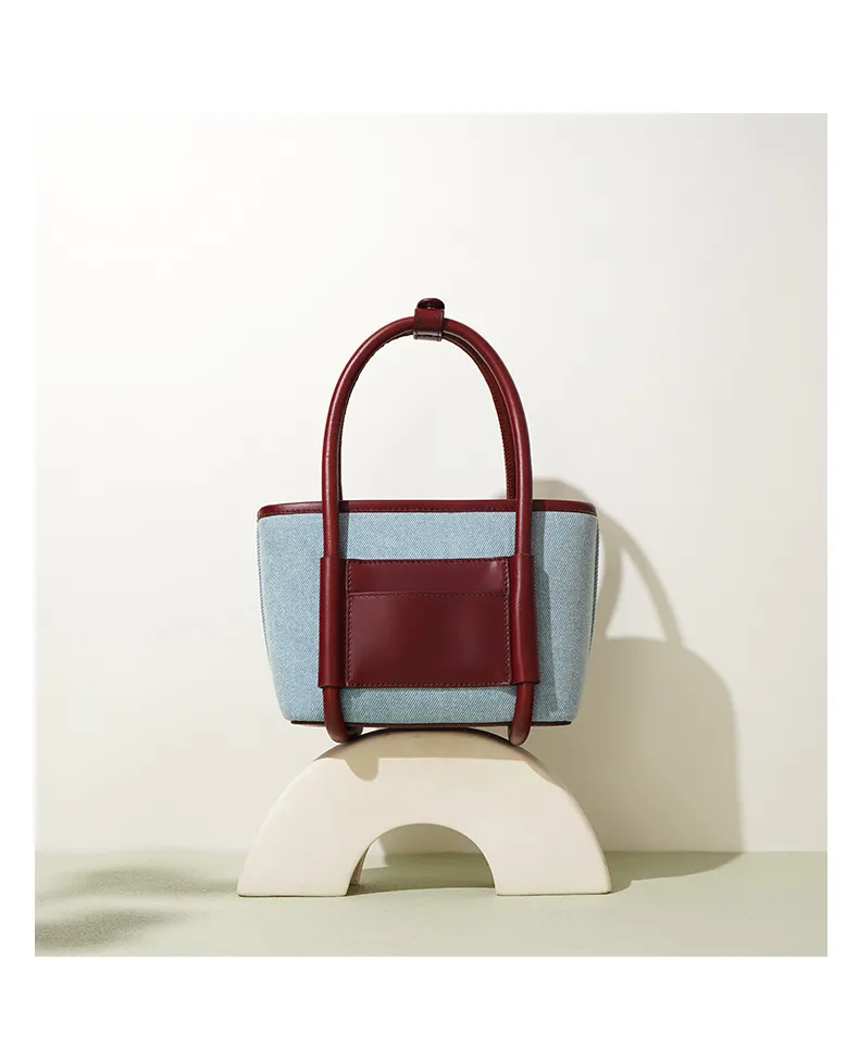 This bag features premium top layer cowhide, known for its durability, smooth texture, and luxurious feel. The cowhide material is carefully selected to withstand daily wear while maintaining its elegance over time. Paired with denim cloth, this bag strikes a harmonious balance between casual comfort and high-end craftsmanship.
