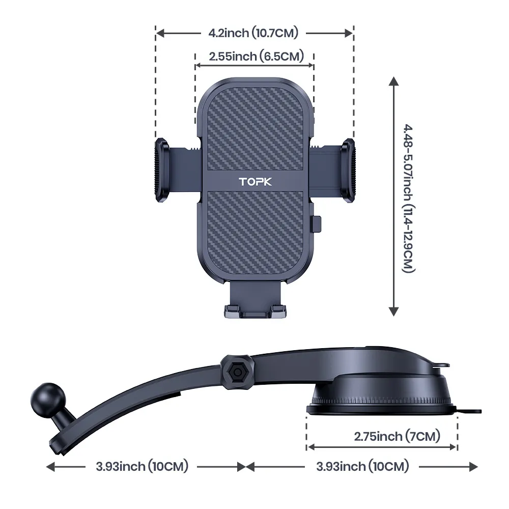 Equipped with a high-strength suction cup, this phone holder attaches firmly to your windshield or dashboard without slipping. The 360° adjustable rotation allows you to position your phone at the perfect angle, ensuring optimal visibility and safer driving.
