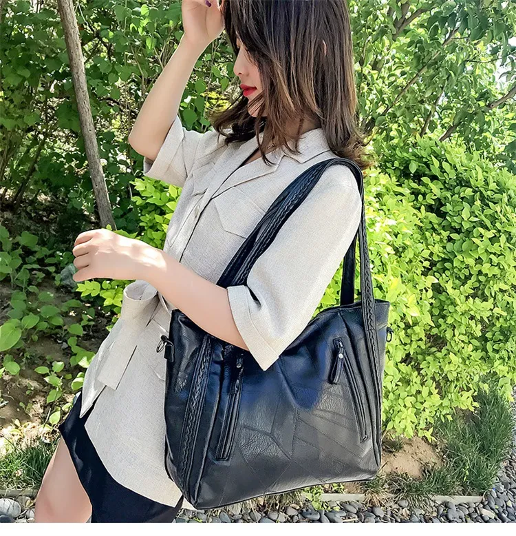 Perfect for New Zealand women who appreciate timeless design and durability, the Tote Bag Large-Capacity Stitching Soft Leather Shoulder Bag is an essential addition to your accessory collection.