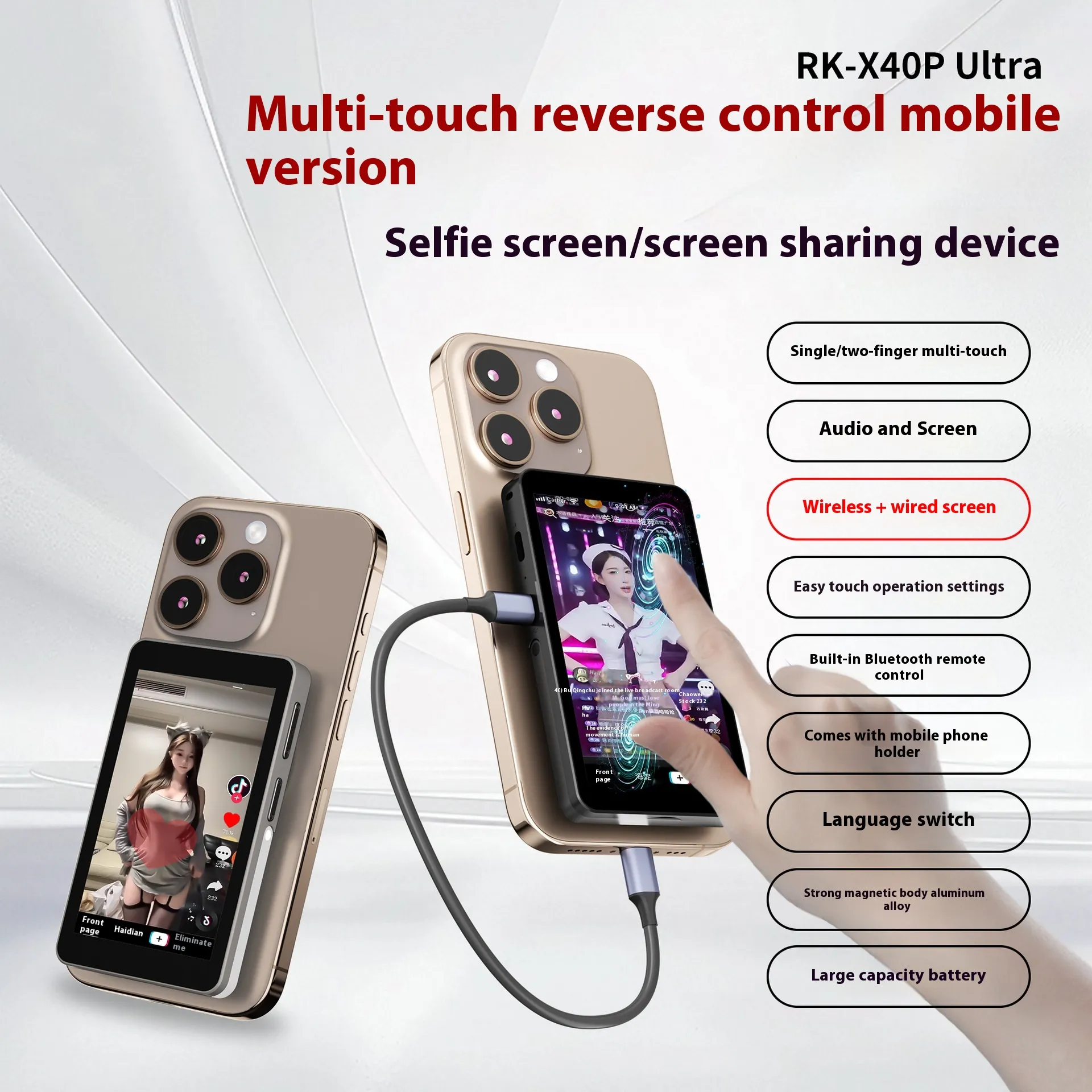 This Touch Screen Zoom Mobile Phone Holder features a rear magnetic suction system, making it easy to attach firmly to your phone without leaving marks or scratches. The strong magnetic force ensures stability, even when you are adjusting angles or using zoom functions during video calls, photography, or online meetings.