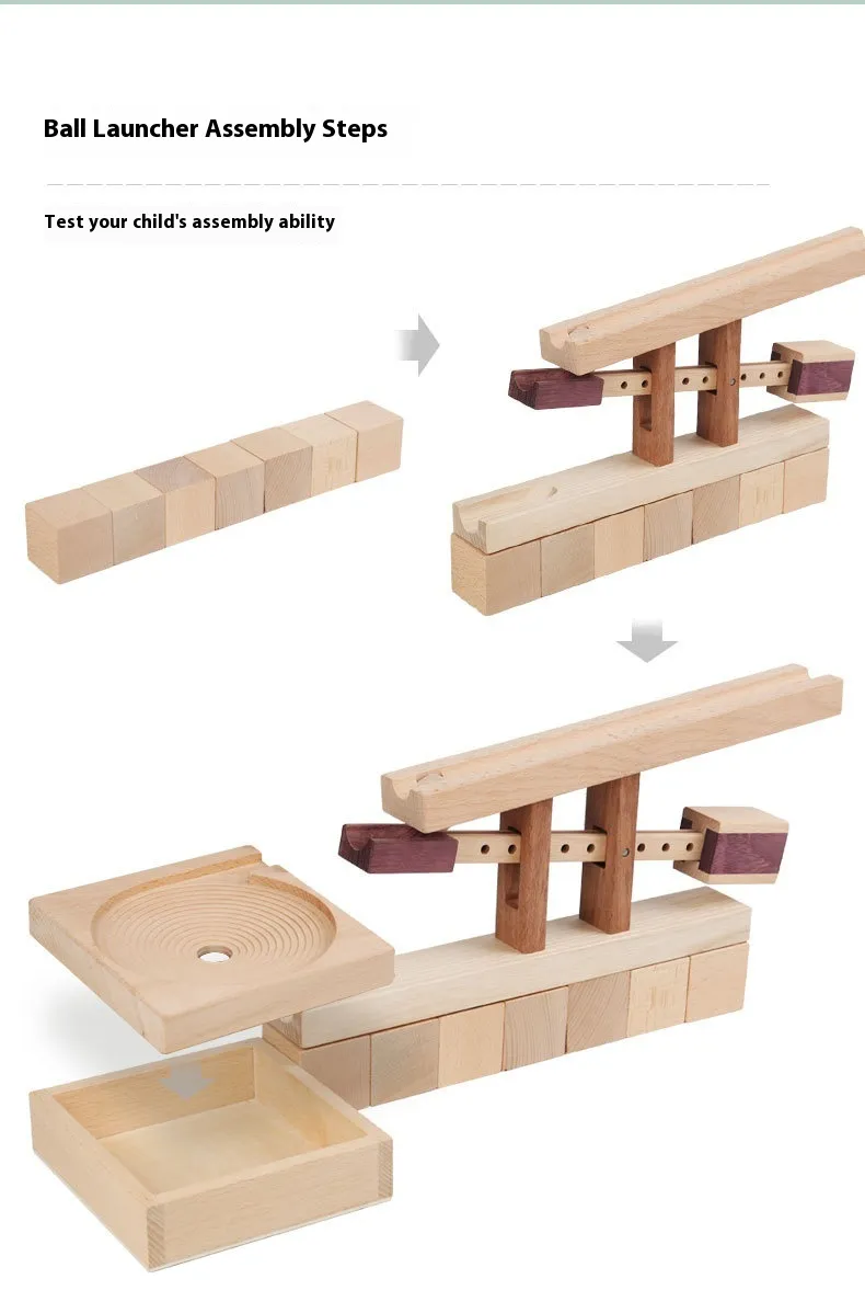 Assembling the blocks and setting up the tracks requires precise movements, which helps improve fine motor skills and hand-eye coordination. By placing the blocks in the correct positions and ensuring the marbles roll smoothly, children practice their dexterity and gain better control over their hand movements. These skills are foundational for tasks like writing, drawing, and other daily activities.
