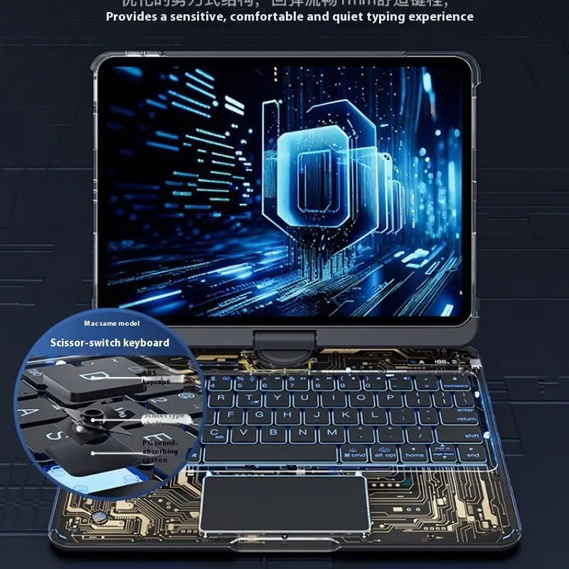 Enhance your Air5 Tablet PC experience with the Transparent Rotating Keyboard Protective Case. This innovative all-in-one accessory combines a durable protective case with a fully functional keyboard, allowing for efficient typing, secure device protection, and flexible usage.
