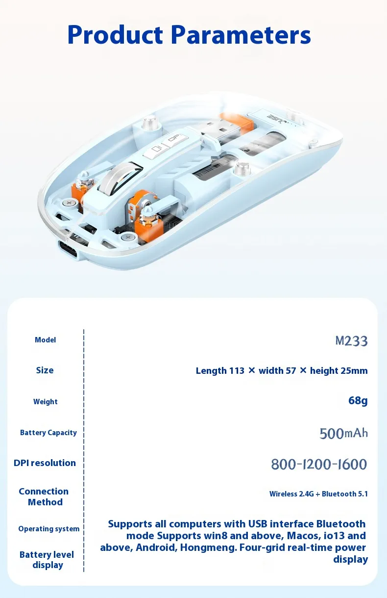 The transparent body design adds a unique and futuristic appearance, allowing you to see the inner components and enjoy a tech-inspired style. Its wireless connectivity ensures cord-free freedom, reducing desk clutter and enhancing mobility. Compatible with Windows, Mac, and other major operating systems, this mouse is versatile for various devices.