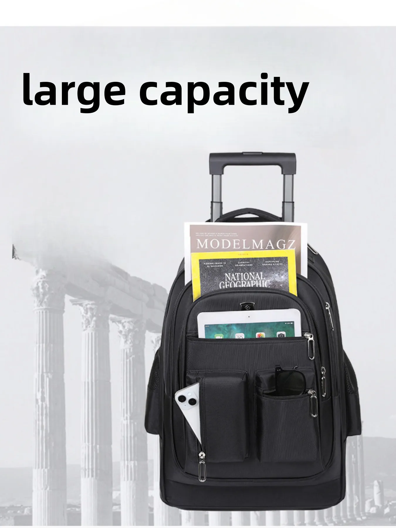 backpack gives you the flexibility to carry it on your back or roll it with ease when needed.