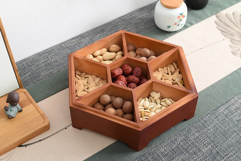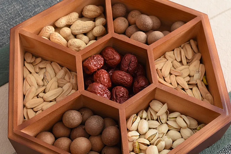This storage tray features multiple compartments that allow you to store different types of nuts, dried fruits, seeds, candies, and even small snacks in one convenient box. The divided grid keeps flavors separate, preventing mixing and ensuring a clean, organized presentation.