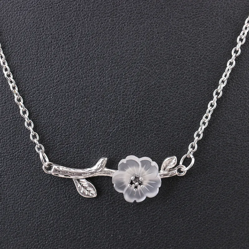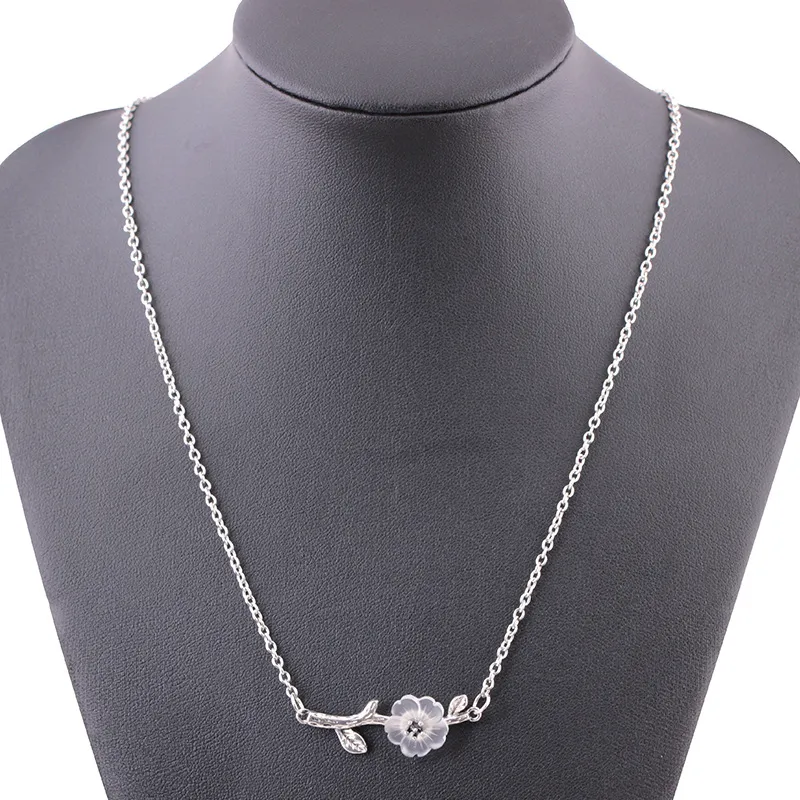 Tree branch Camellia Flower Pendant Necklace