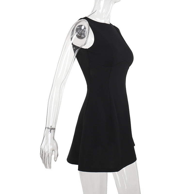 sleeveless dress, fashionable summer outfit, elegant backless dress, summer dress for women, sleeveless mini dress, trendy short dress, sexy