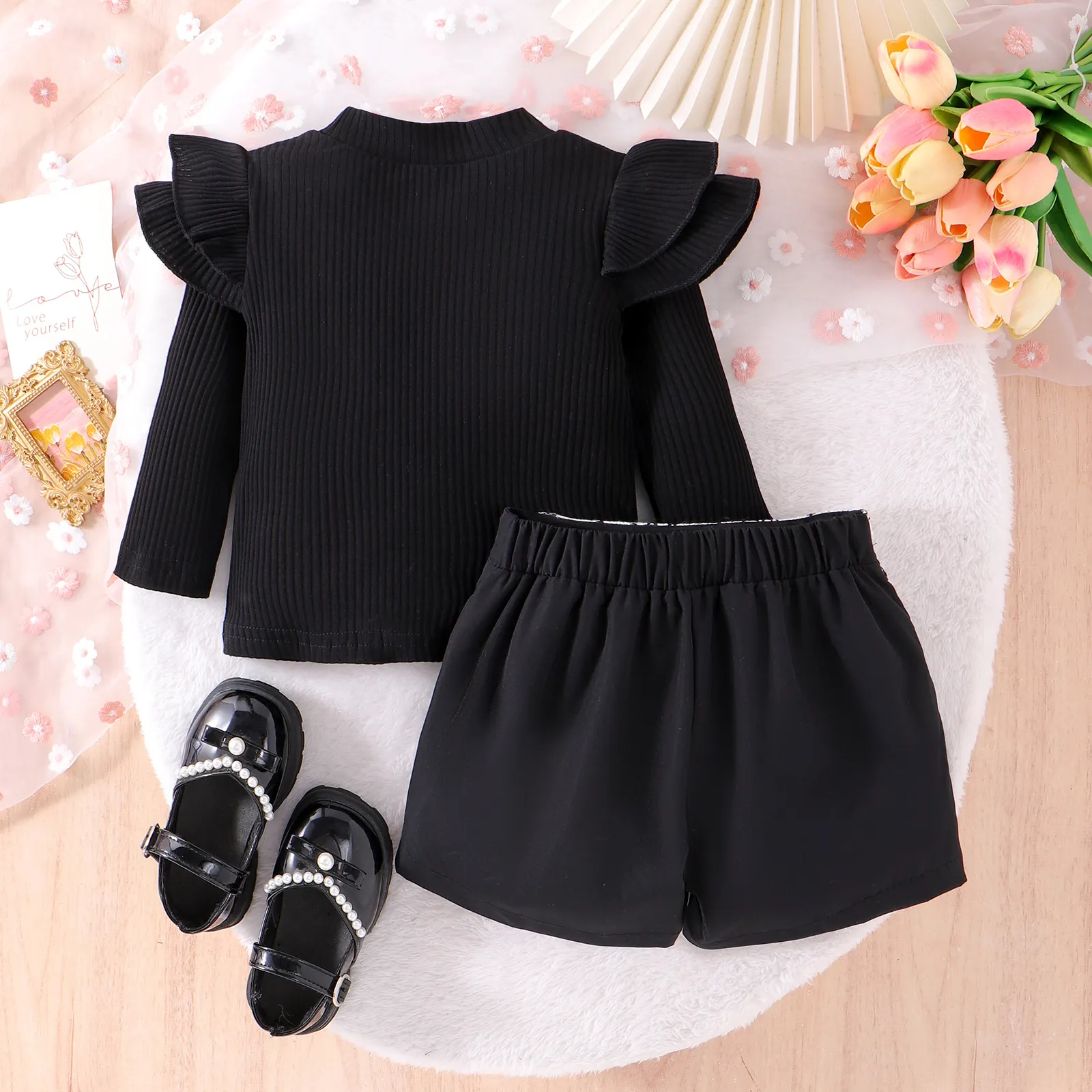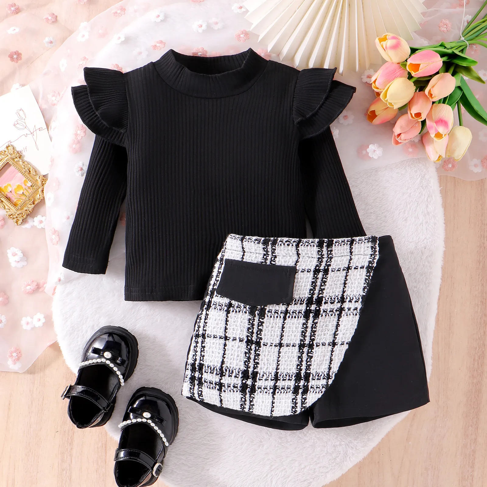 Trendy Girls' Skirt Set – Solid Color Striped Long Sleeve & Classic Culottes