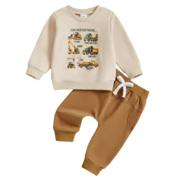 Truck Building Printing Boys Sweater Suit