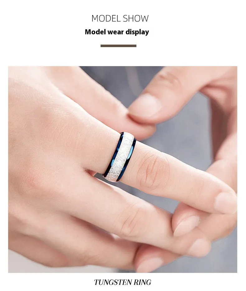 Tungsten Steel Fog Pattern Ring Men's Simple Ring Shank