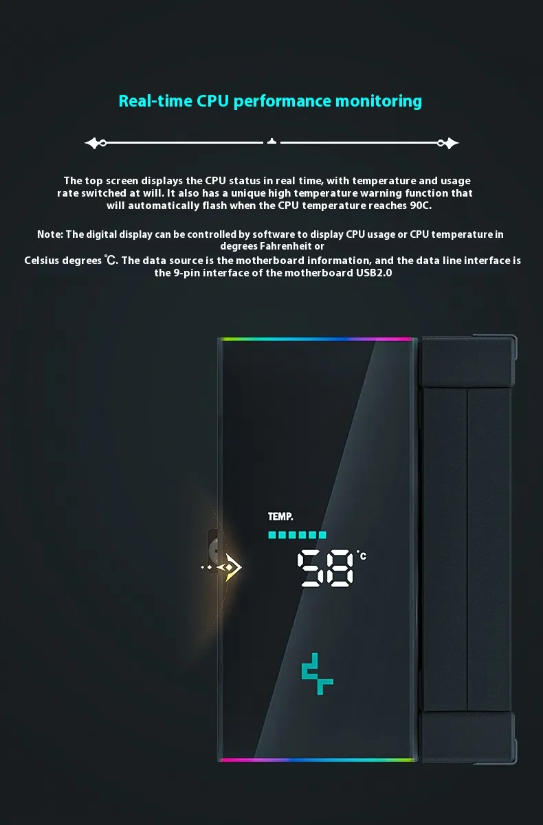 Equipped with temperature sensors and monitoring capabilities, the Twin Tower Air-cooled Heat Sink allows you to track and manage your system's temperature in real-time. By keeping a close eye on your system's performance, you can adjust your cooling system settings to ensure optimal cooling efficiency and avoid overheating. This feature is especially useful for gamers, streamers, and content creators who push their systems to the limit with resource-intensive applications.