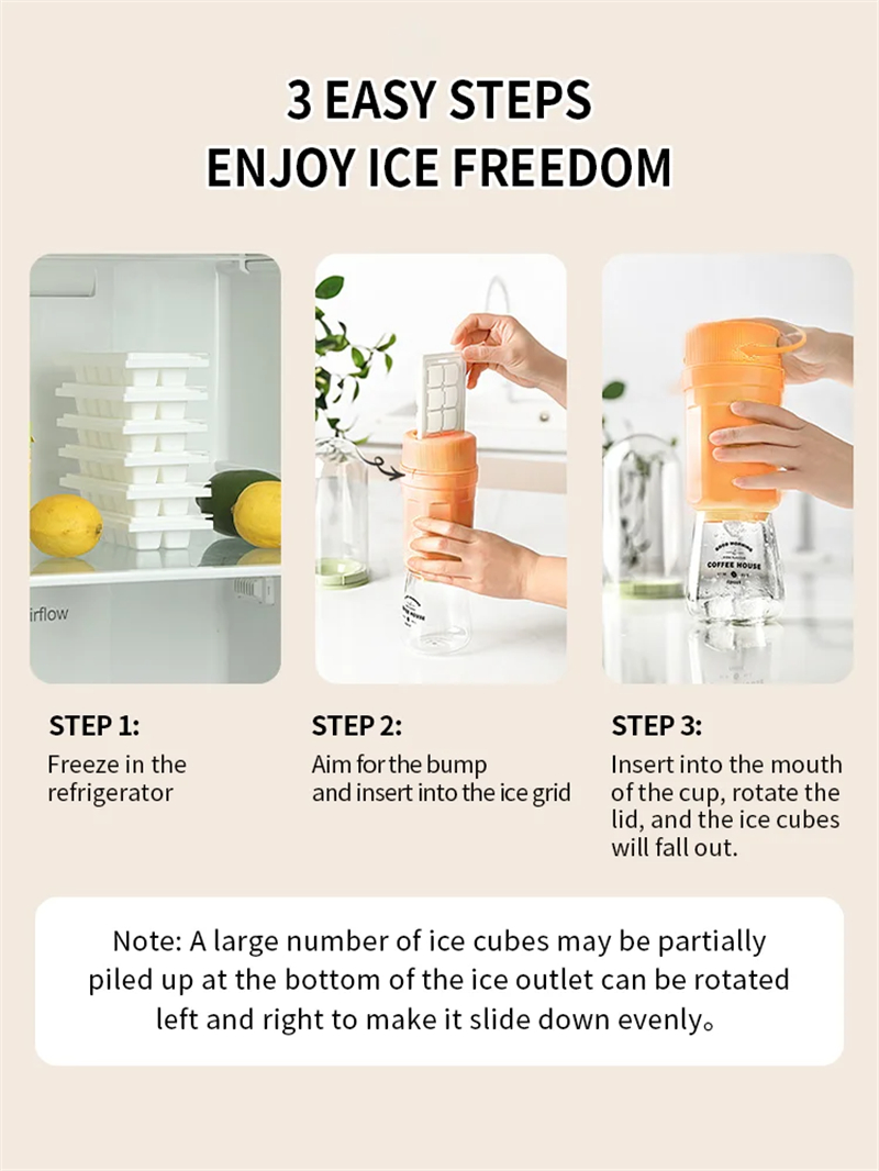 Upgrade your kitchen accessories with our Twisting Ice Cup and Rotating Release Ice Cube Trays. Order now and enjoy the ease and convenience of perfectly shaped ice cubes!