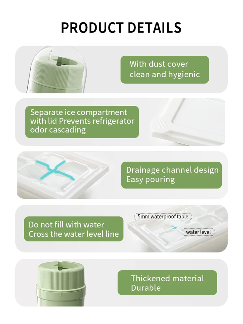 The ice cube tray comes with a sealing lid that tightly covers the tray, preventing spills, ice sticking, and odors. This innovative design ensures your ice cubes remain delicious and free from any unwanted smells.