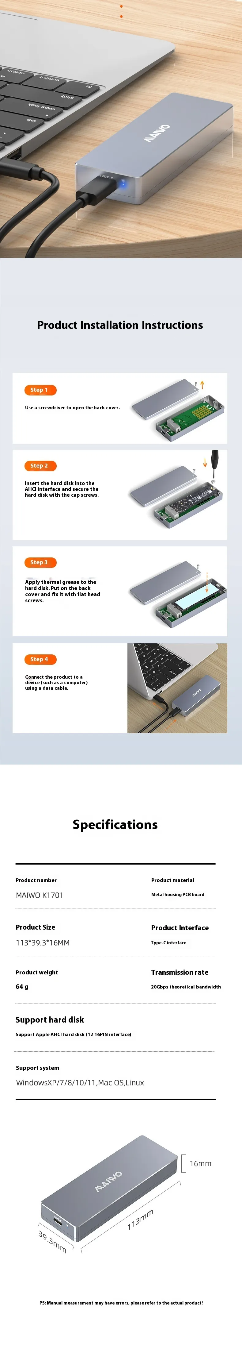 Hard disk box * 1pc + delivery screwdriver * 1pc+screw * 2pc + silicone heat radiating phone screen protector * 1pc+ Adapter cable x1pc
