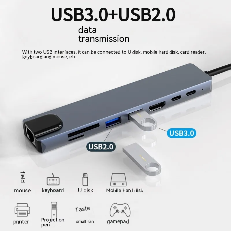 Type-c Expansion Dock 8 In 1 Multi-function Hub