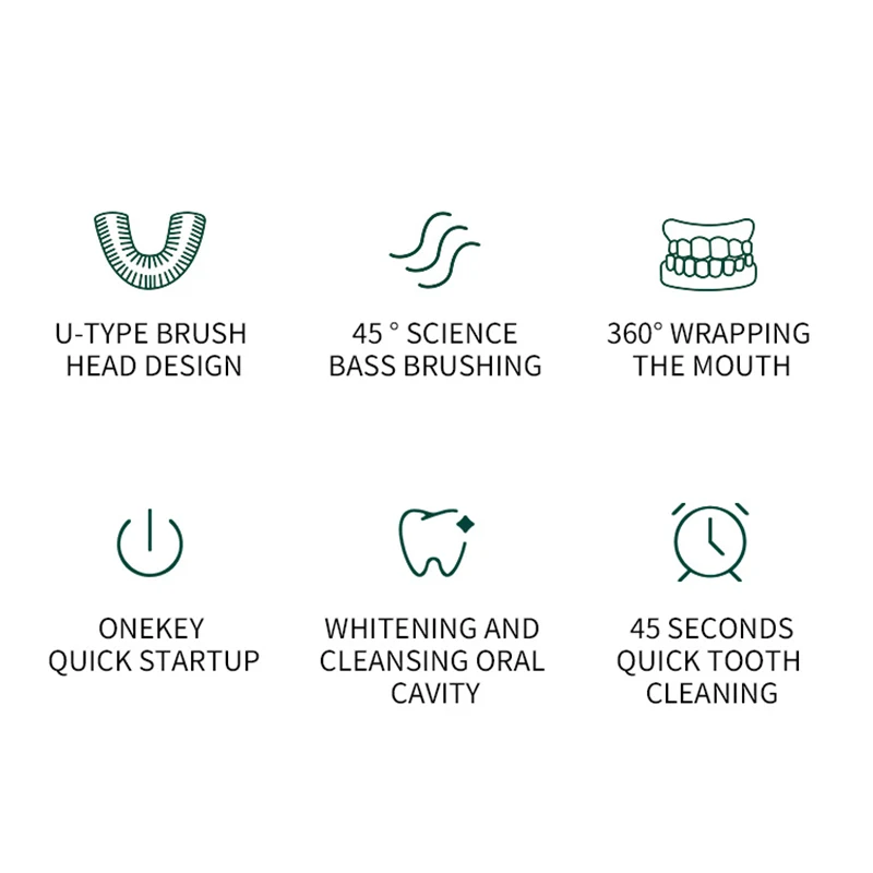 (4) Unique U-shape Bite Design:U-shaped bite is designed to fit the mouth shape,can clean the surface and interior of the teeth in all