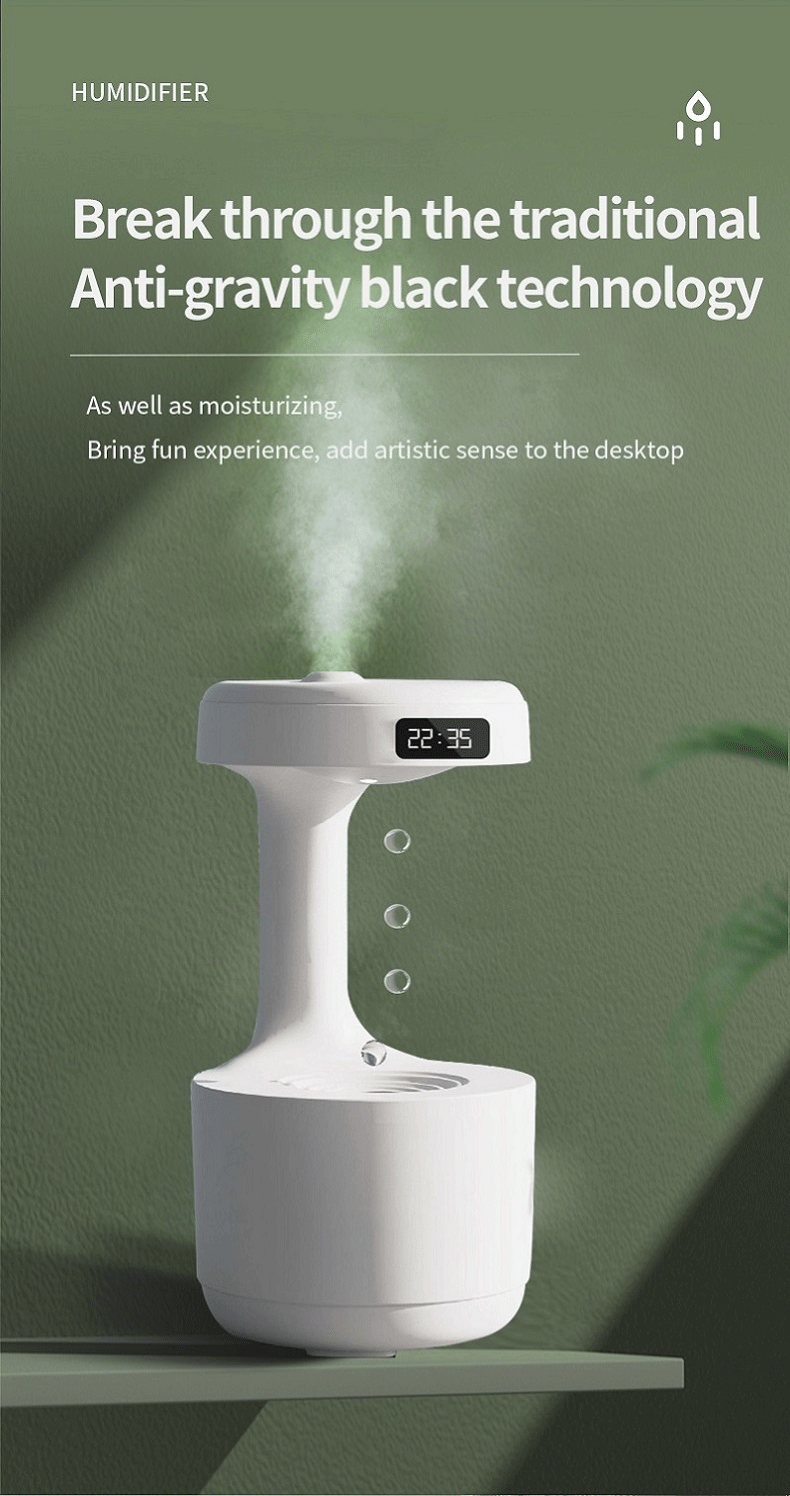 Step into the realm of tranquility and embrace the epitome of relaxation with our Ultra-Quiet Large-Capacity Anti-Gravity Aromatherapy Humidifier. Crafted to elevate your ambiance, this marvel of modern technology seamlessly blends aesthetics with functionality, creating an oasis of serenity in your living space.