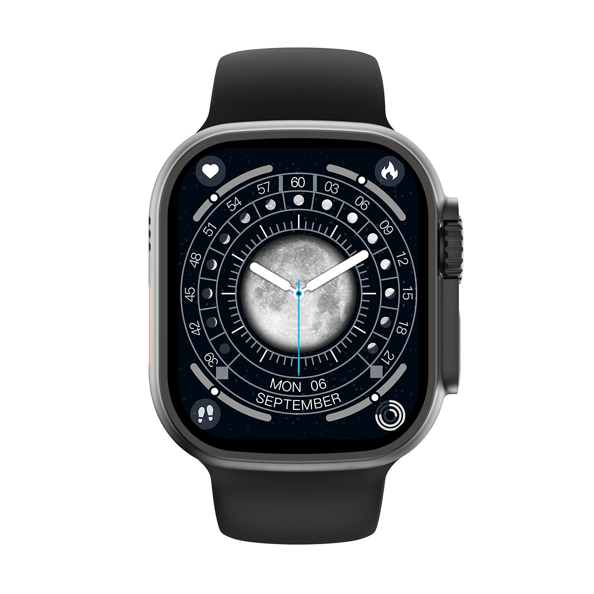 Ultra Watch 49mm: Larger, brighter display showcasing detailed health metrics and dials.