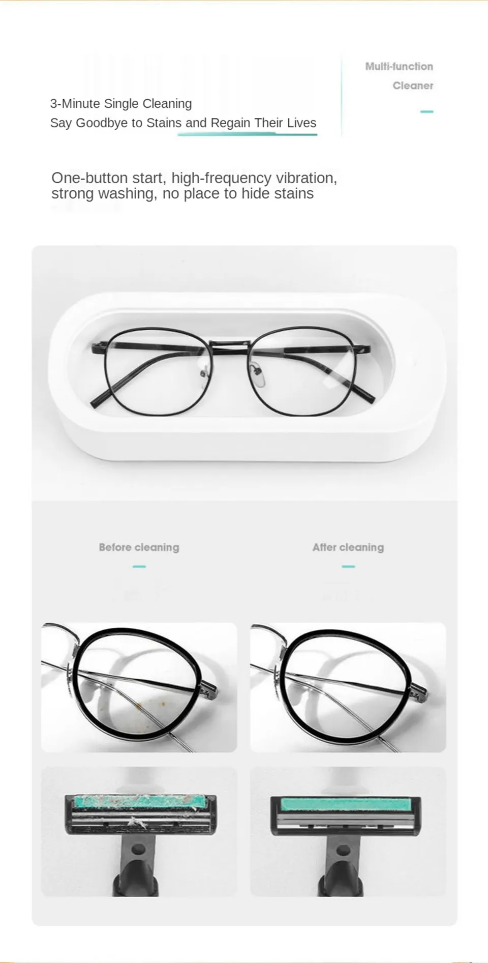 This product is suitable for cleaning glasses, contact lenses, jewelry, watches, makeup tools, children's tableware, razors and other