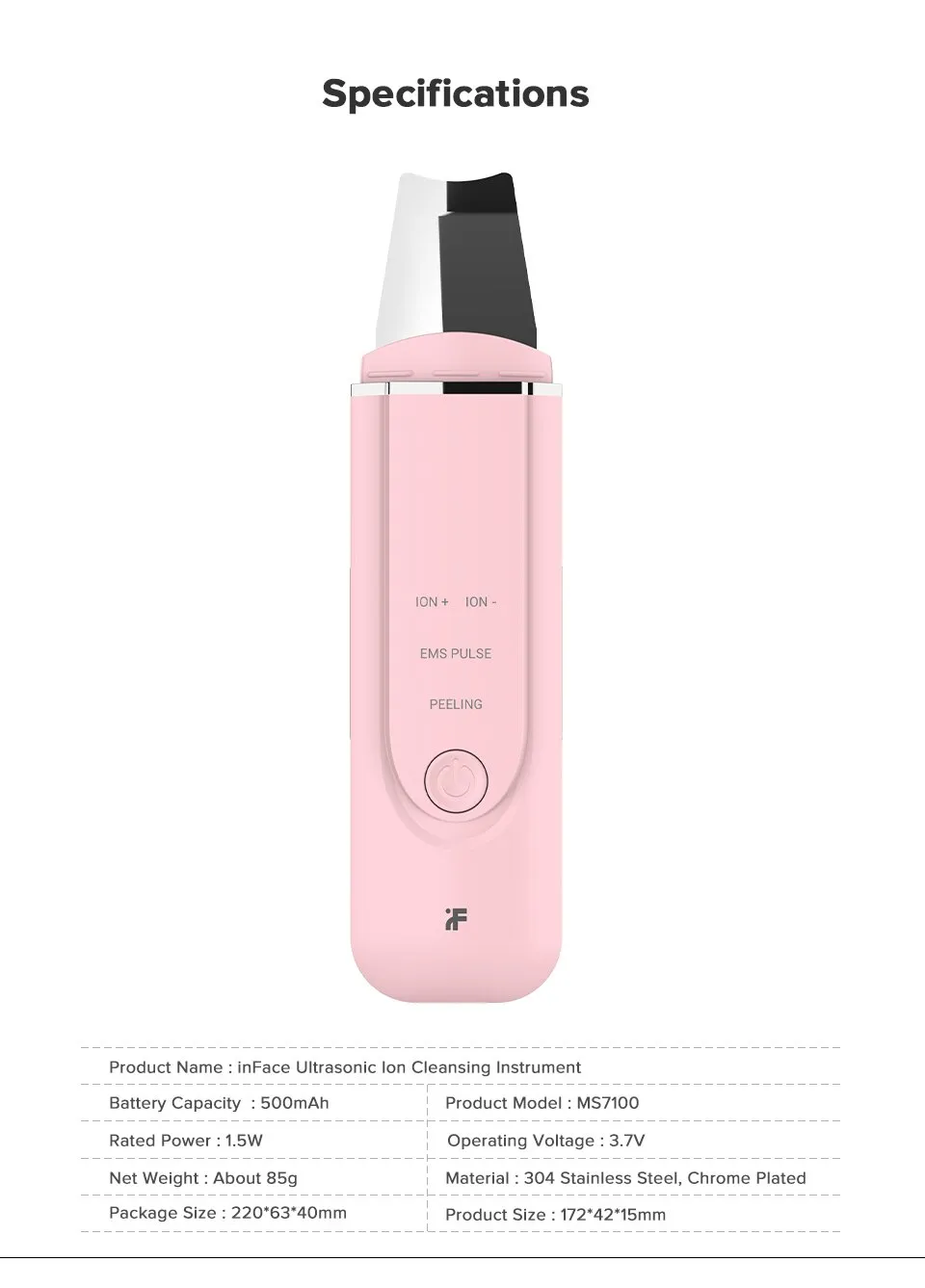 Package contents: 1 x inFace ion ultrasonic cleaner 1 x Type-C charging cable