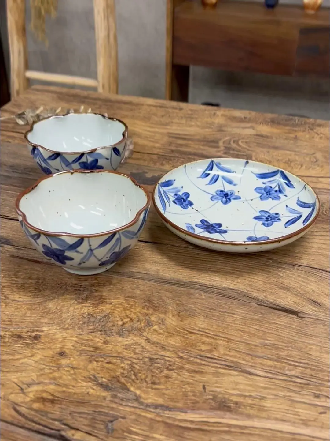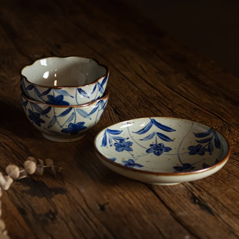 Underglaze Blue Bowl Retro Stoneware Rice Bowl