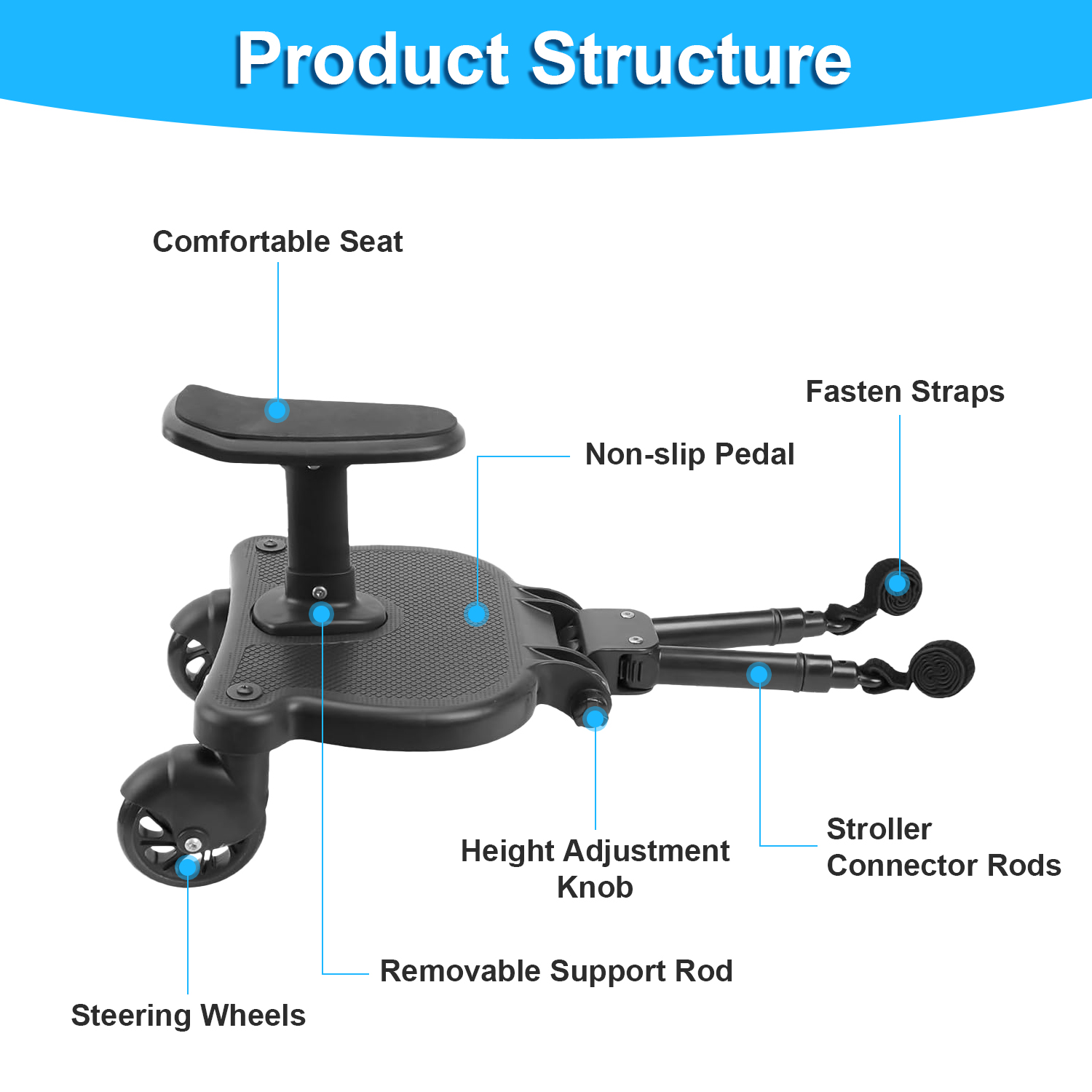 Sturdy and Secure: Designed with safety in mind, the stroller board features secure attachment points and a stable platform