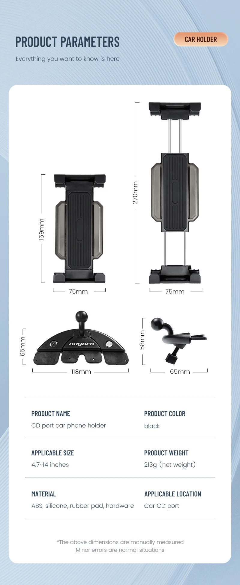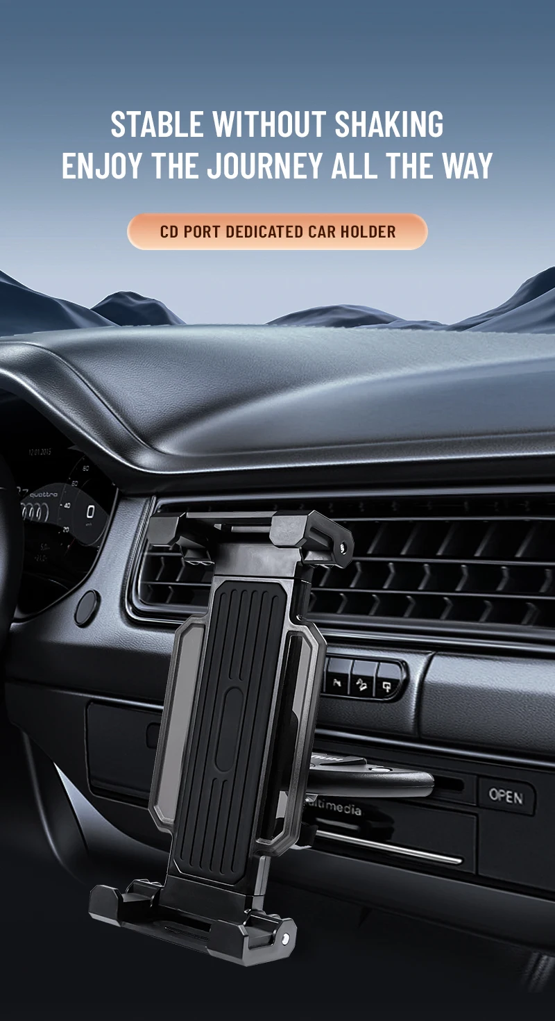 The Universal Tablet & Phone Car Mount is an innovative, easy-to-install CD slot bracket designed to hold a range of devices from 4 to 13 inches securely in place. This versatile mount fits into your car’s CD slot, transforming it into a stable platform for tablets and smartphones, including iPad, iPhone, Samsung, Xiaomi, and other devices. Ideal for hands-free navigation, media streaming, and safe driving, this mount provides an adjustable and secure solution for your device, keeping it within easy reach without obstructing your view. Perfect for daily commutes or road trips, it makes in-car device use safer and more convenient.