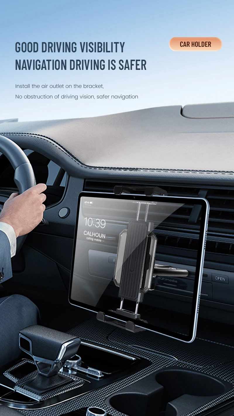 This car mount is ideal for multiple in-car activities, including navigation, hands-free calls, and entertainment. It supports landscape and
