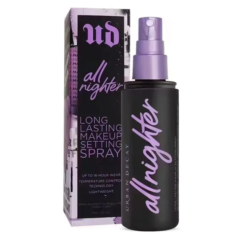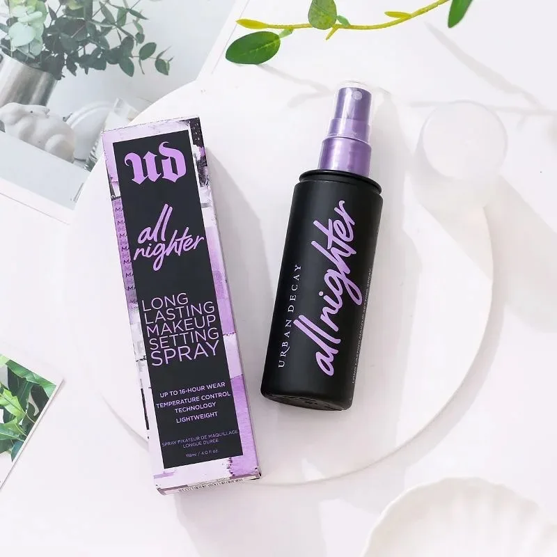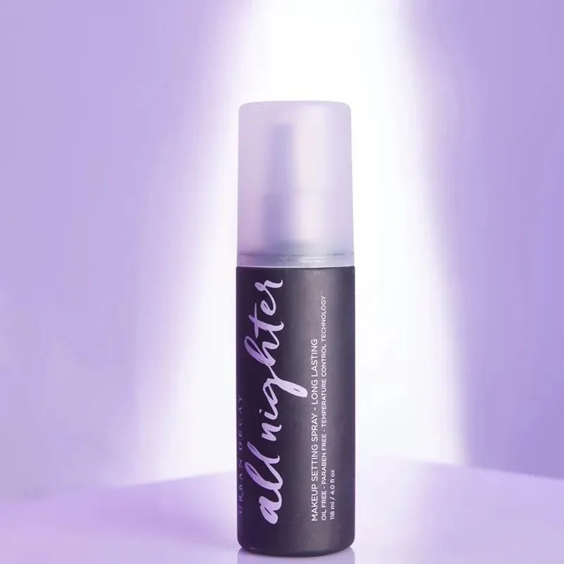 Urban Decay All Nighter Long Lasting Makeup Setting Spray 118ml/4oz A lightweight, advanced makeup setting spray Helps keep makeup looking gorgeously just-applied for up to sixteen hours Developed with patented Temperature Control Technology Helps lower the temperature of makeup & keep it in place Creates smoother skin & vibrant, long-lasting makeup Perfect for all skin types Free of oil & parabens