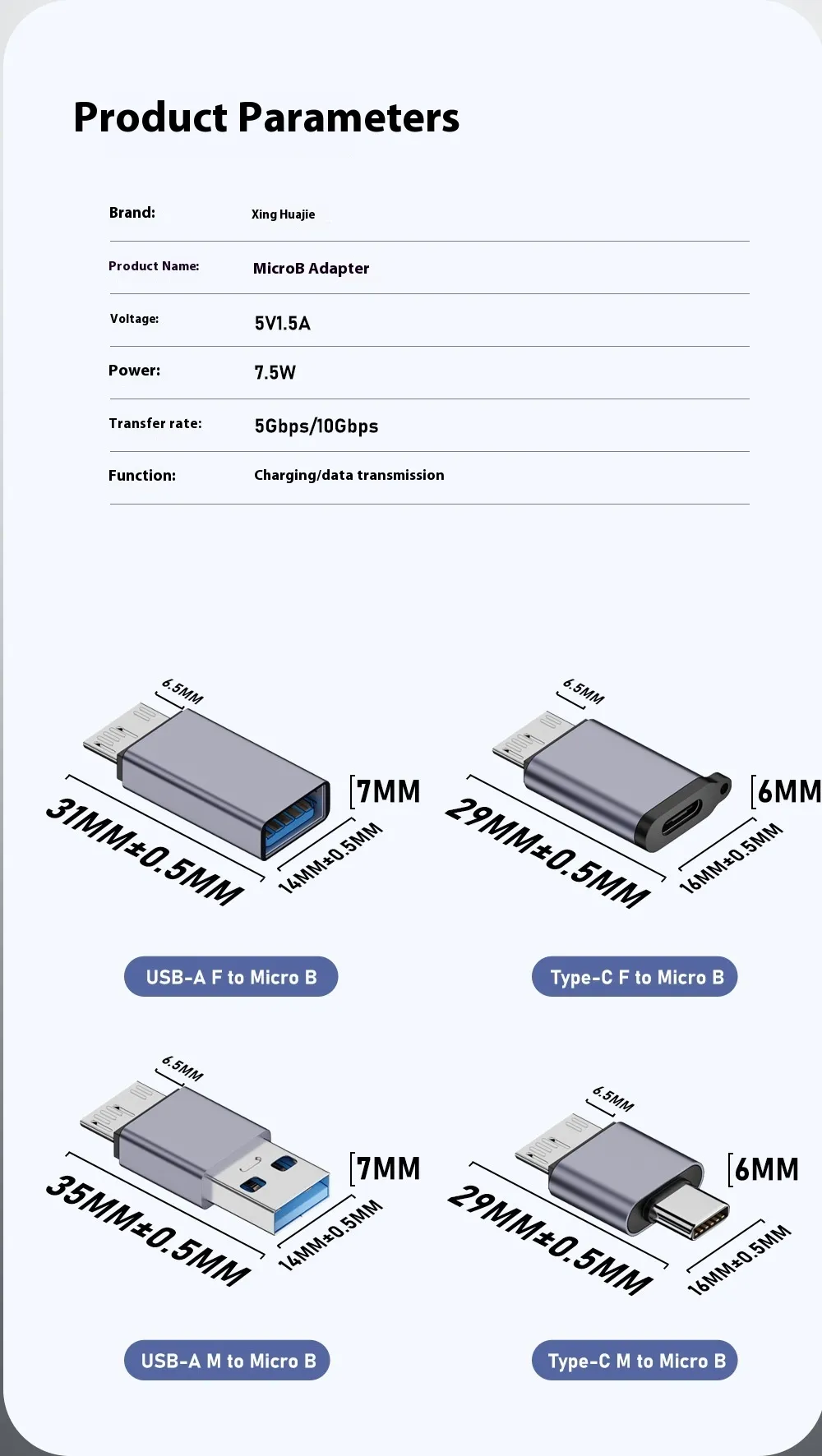 Applicable models: Micro B interface old mobile hard drives, hard drive cases, mobile phones, etc