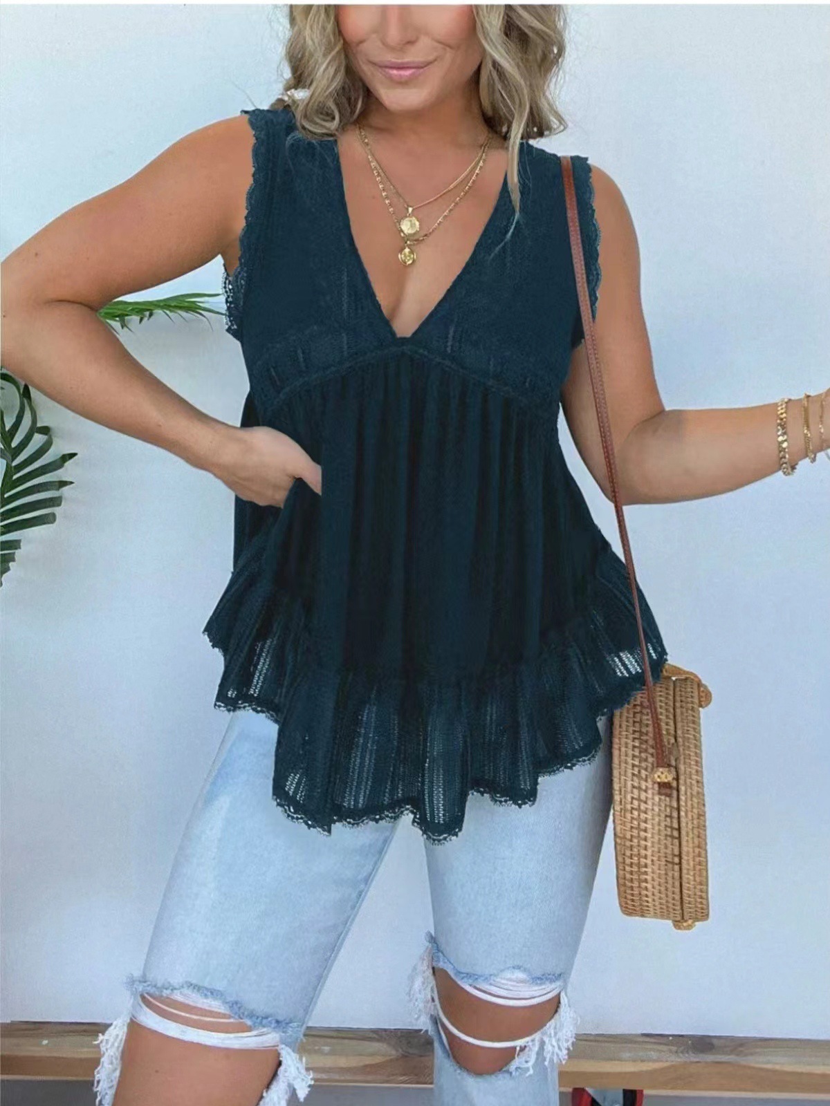 But it's not just about aesthetics; our Velvet Lace V-neck Top is designed to celebrate the diversity of women's bodies. Available in an