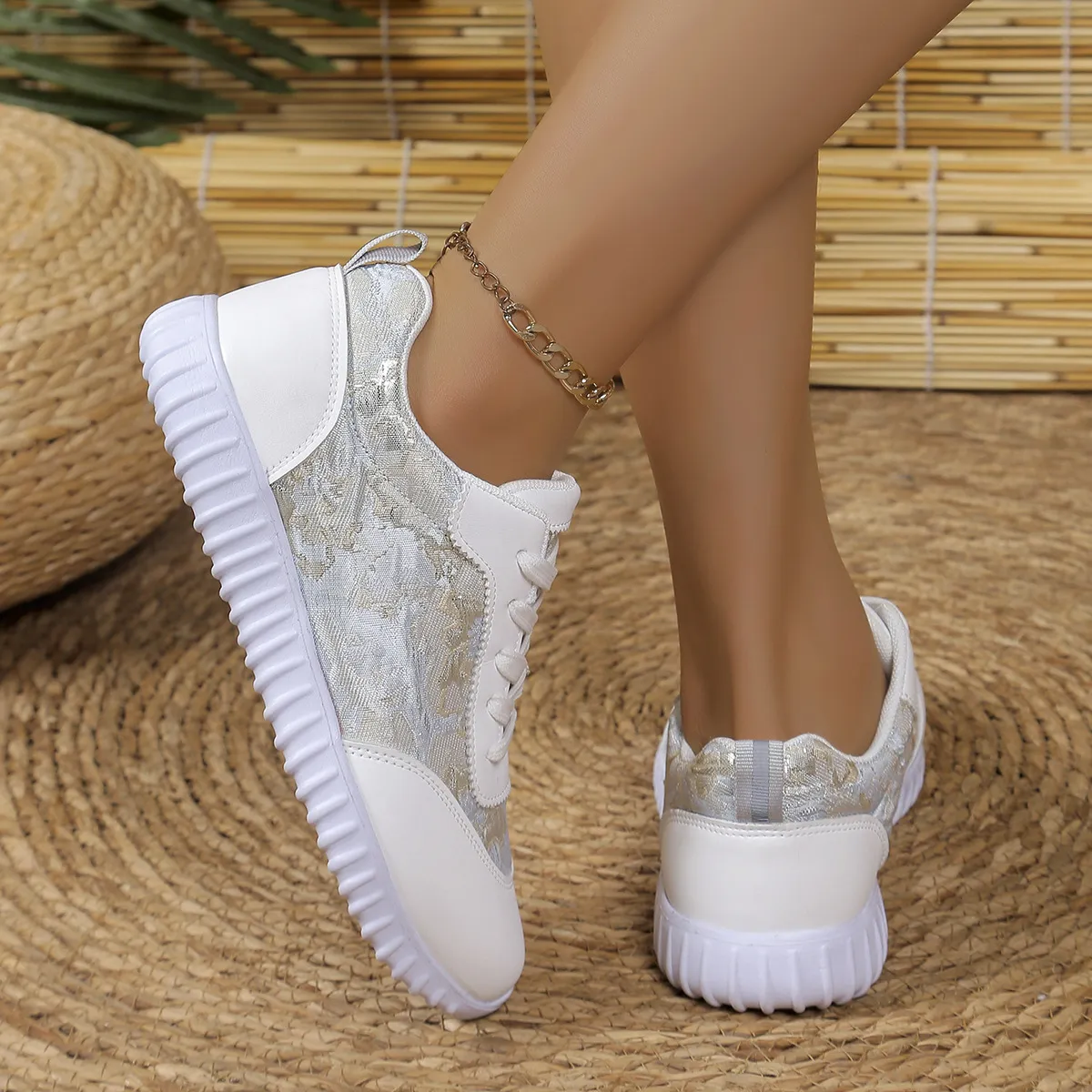 Versatile Lace-up Flat Shoes Casual Lightweight Thick-soled Running Sports Shoes Low-top Breathable Sneakers For Women