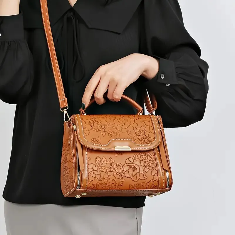 Despite its sleek design, this bag offers a spacious interior with plenty of room to carry your wallet, phone, keys, makeup, and even a small notebook or tablet. The main compartment is well-organized, ensuring that your essentials are easy to access. Plus, the bag features a zippered pocket for added security, perfect for storing your valuables.