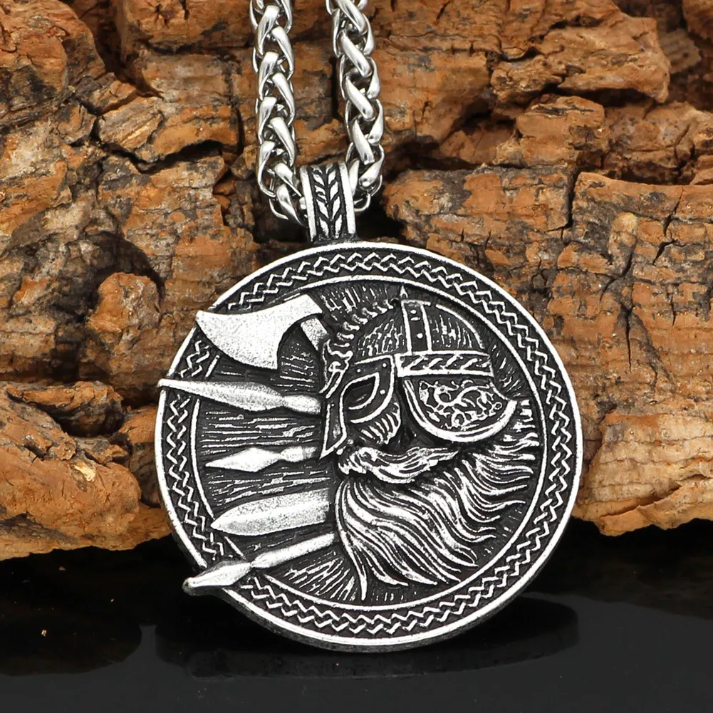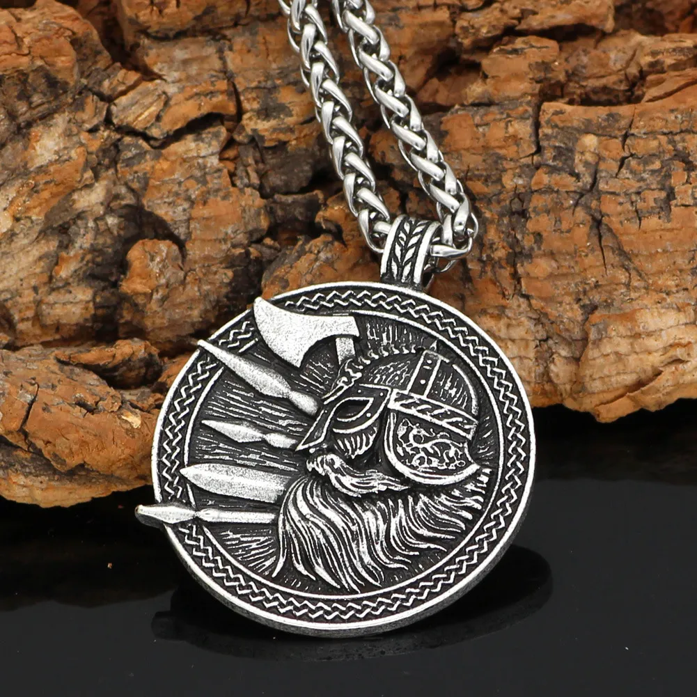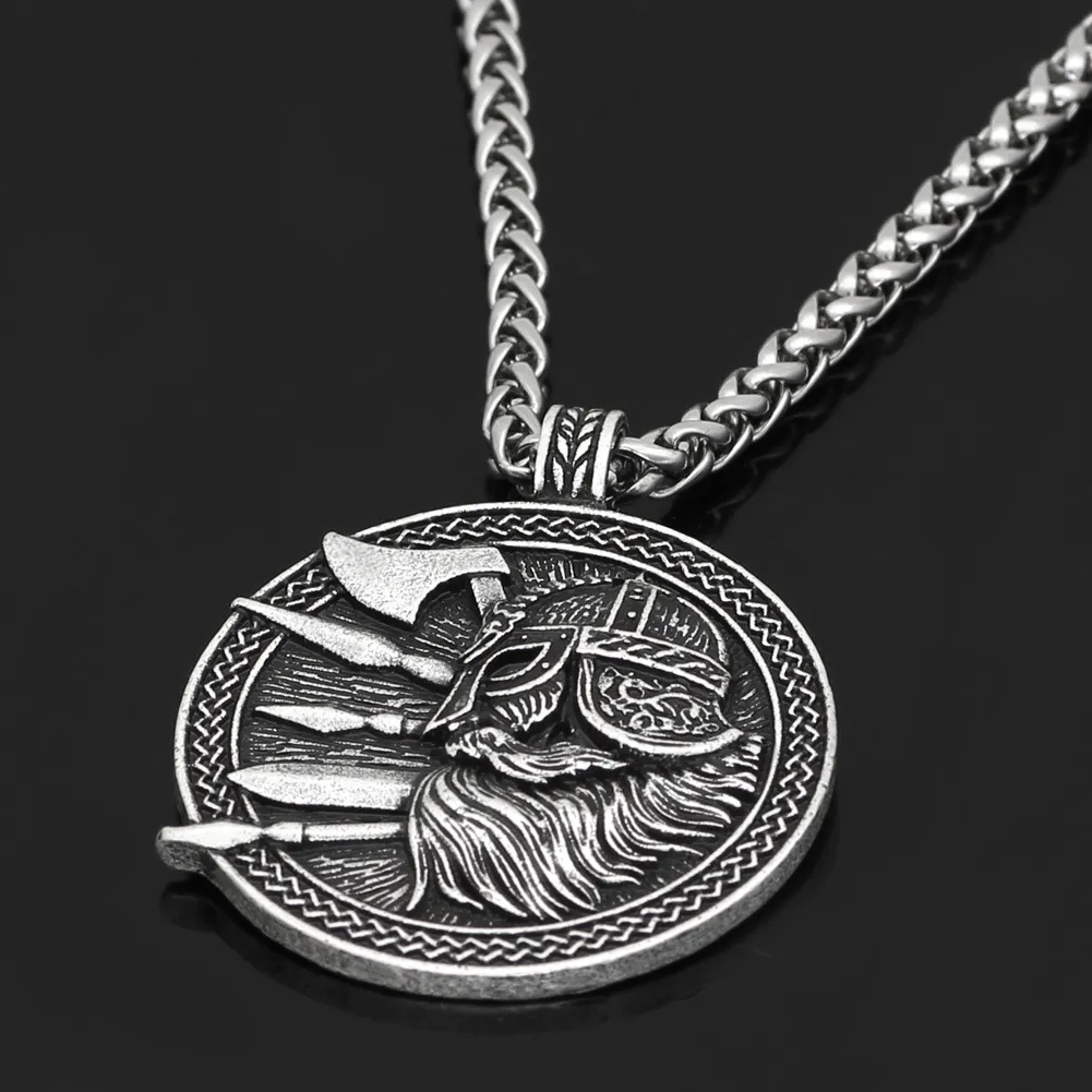 Viking Culture Odin Helmet Axe Round Men's Accessory Necklace