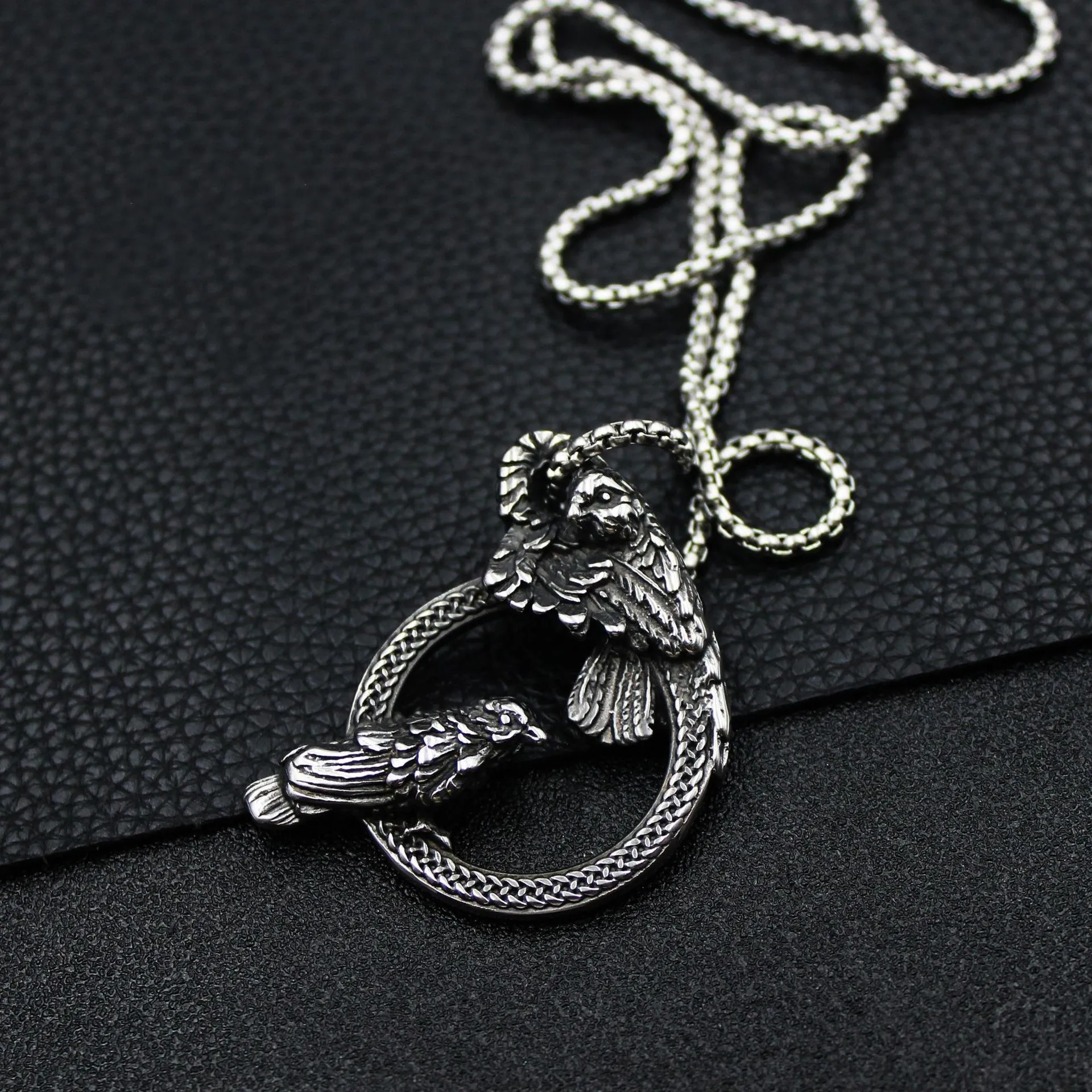 Viking Ring Crow Pendant Retro Trendy Titanium Steel Necklace