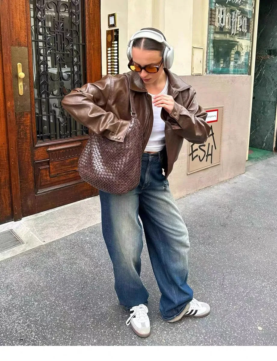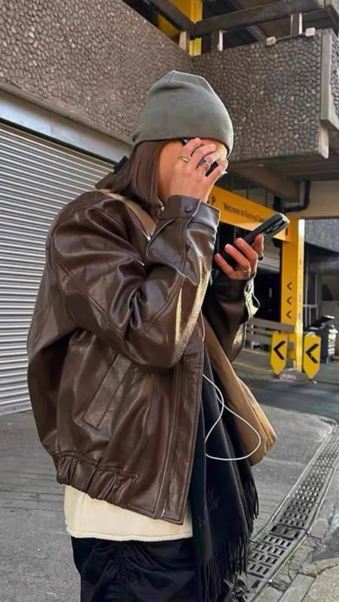 Vintage Brown Leather Motorcycle Jacket