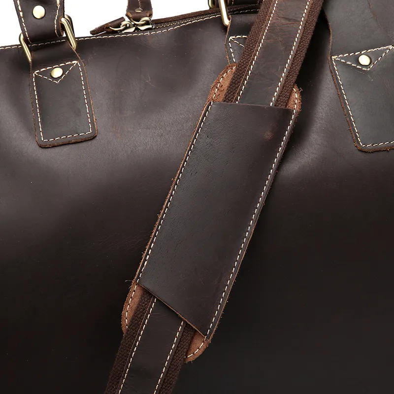 Elevate your travel experience with the Vintage Cowhide Men's Bag, a large-capacity travel leather shoulder bag designed for the modern man