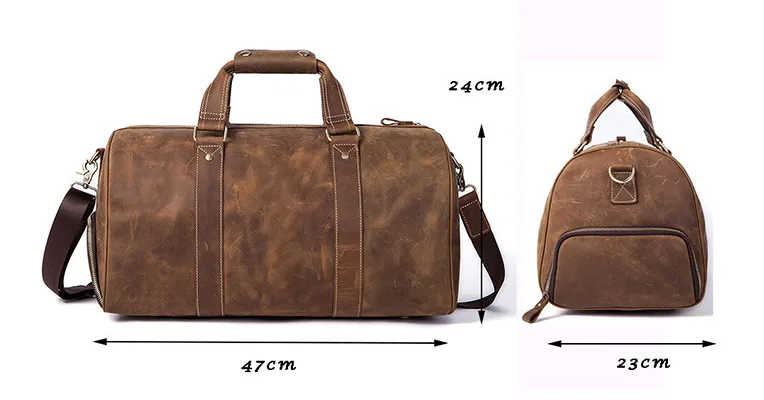 Embark on your adventures in style with the Vintage Crazy Horse Leather Men's Travel Bag. Designed for the modern traveler, this bag is