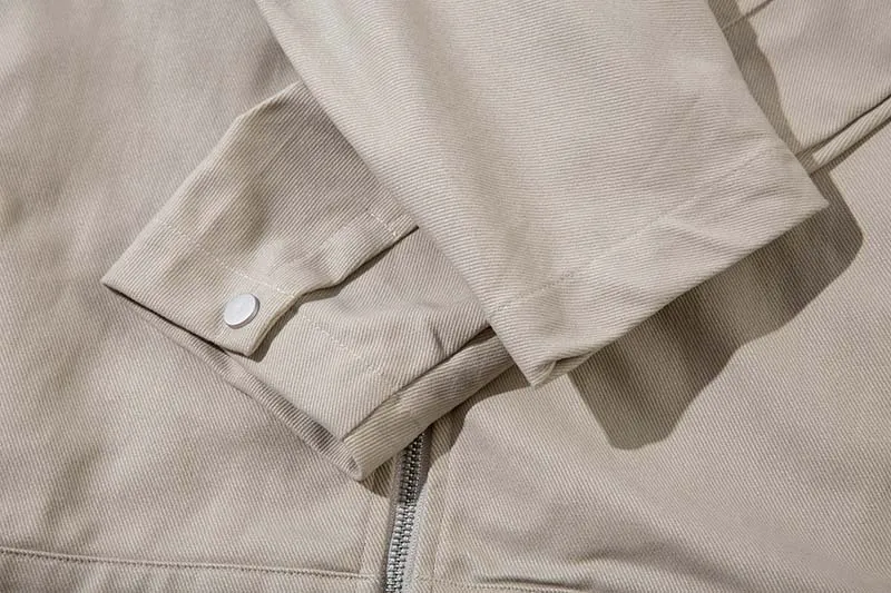 Perfect for pairing with jeans, joggers, or casual trousers, the Vintage Crumpled Letters Polo Collar Jacket is a statement piece that enhances any laid-back, fashion-forward look.