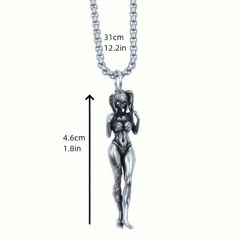 Unique design: Based on the image of a small ugly woman as the pendant prototype, the design is vivid. She tied her iconic double ponytail, with smooth body lines and exquisite clothing details, showcasing the mystery and personality of retro gothic style.